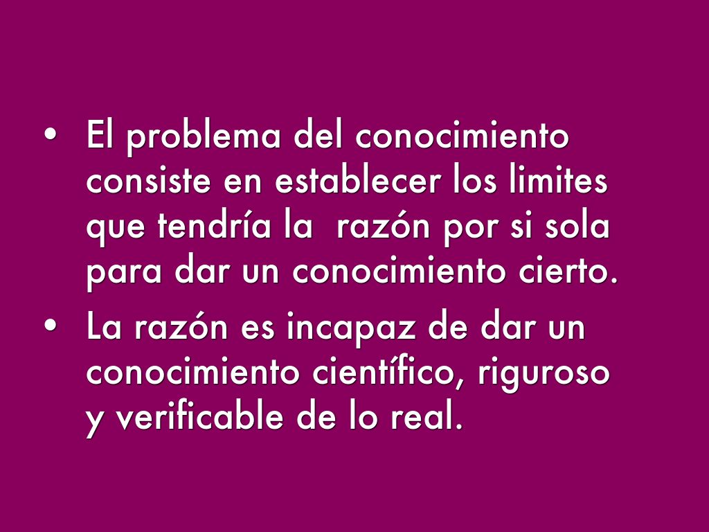 - La razón es incapaz de dar un conocimiento científico, riguroso y verificable de lo real.