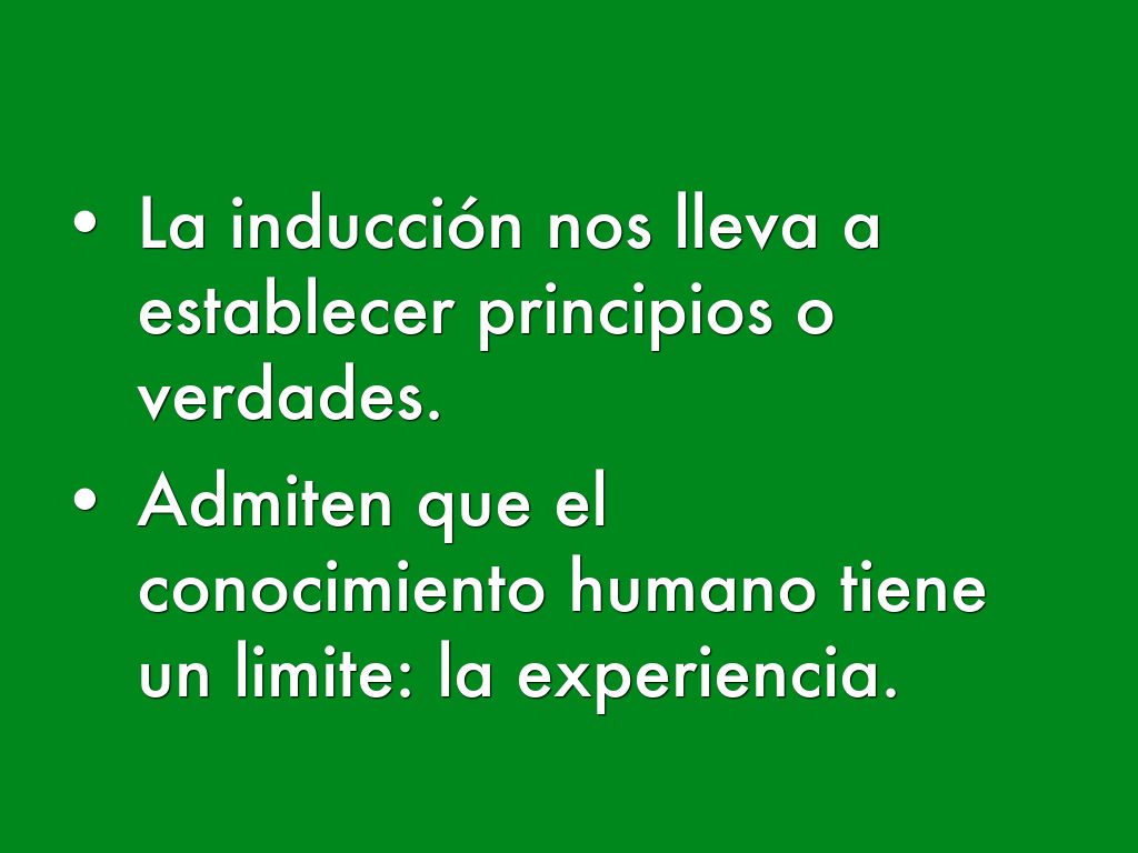 - La inducción nos lleva a establecer principios o verdades.