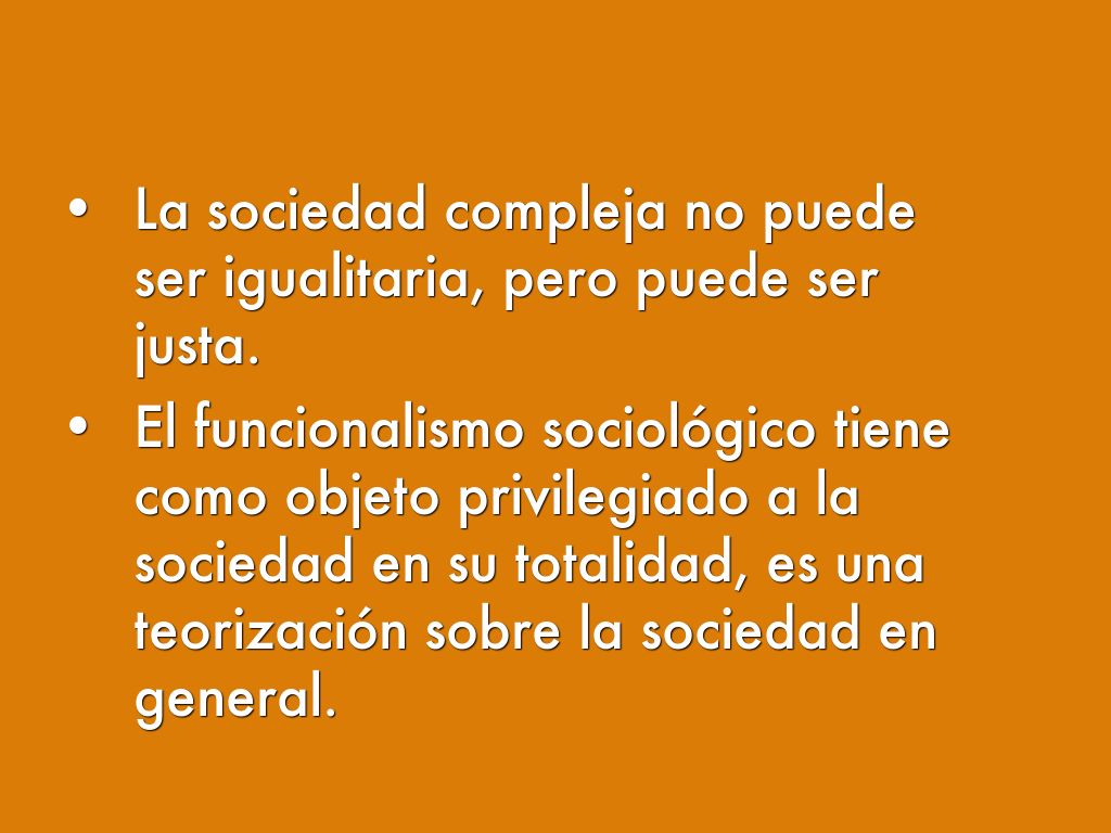 - La sociedad compleja no puede ser igualitaria, pero puede ser justa.