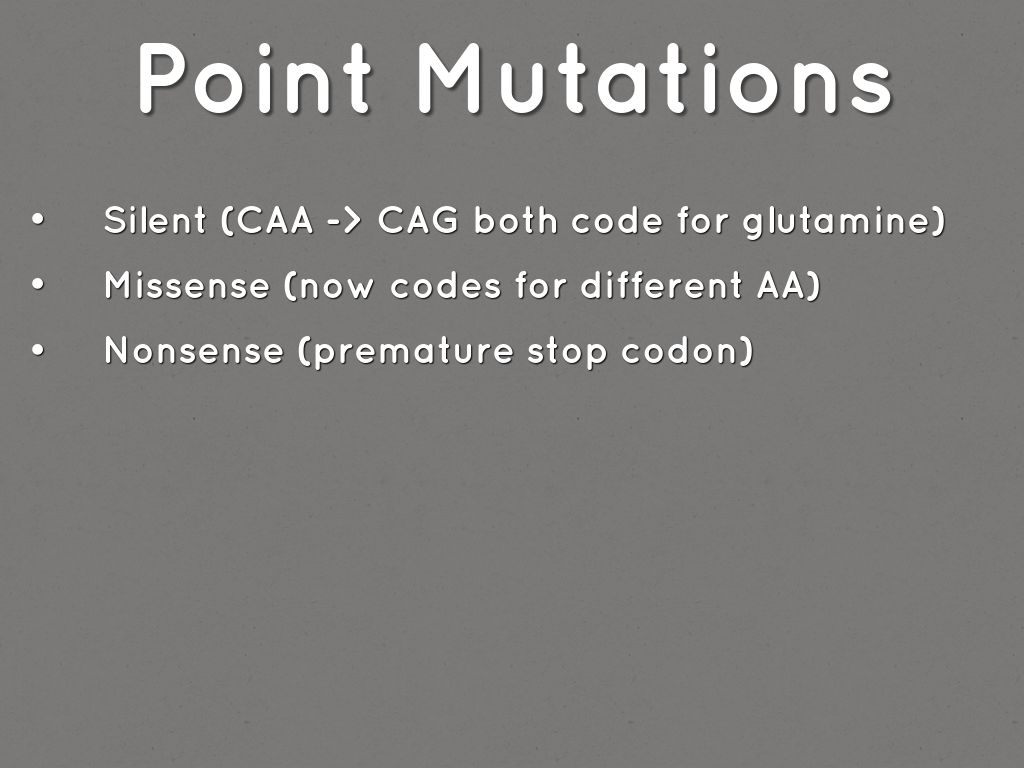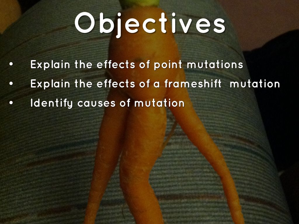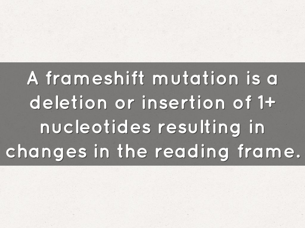 A frameshift mutation is a deletion or insertion of 1+ nucleotides resulting in changes in the reading frame.