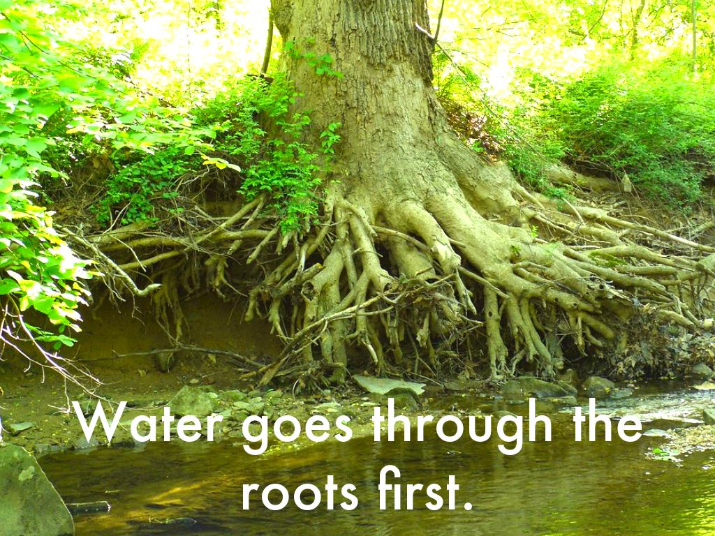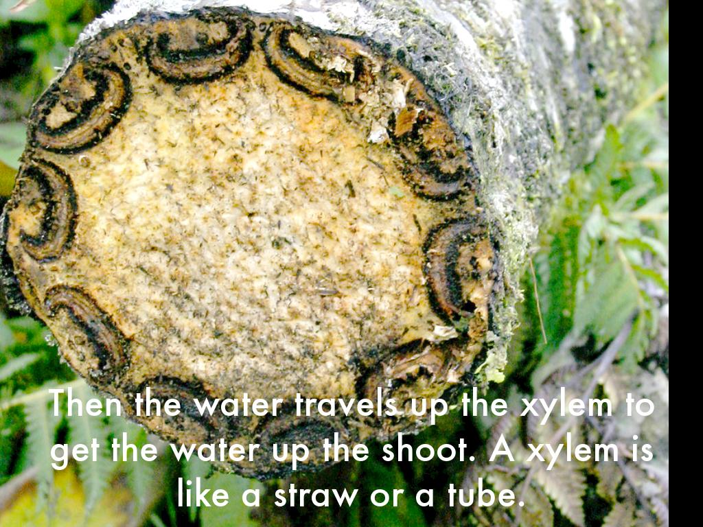 Then the water travels up the xylem to get the water up the shoot. A xylem is like a straw or a tube.