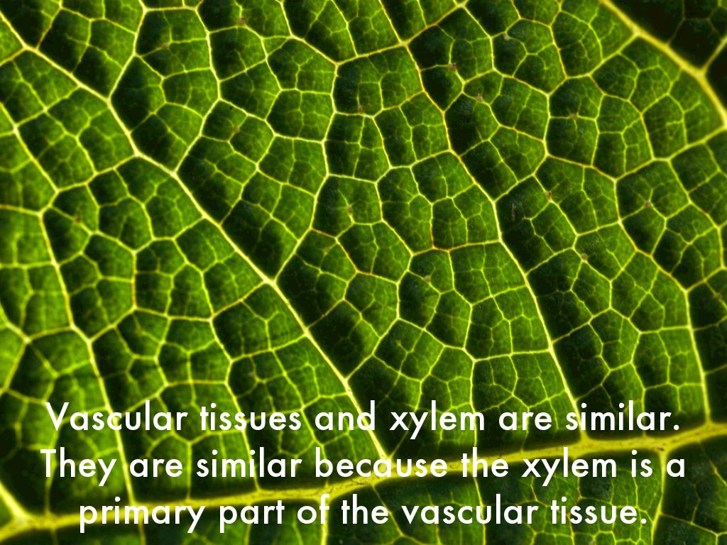 Vascular tissues and xylem are similar. They are similar because the xylem is a primary part of the vascular tissue.