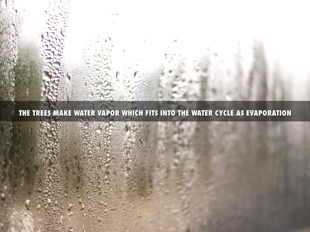 THE TREES MAKE WATER VAPOR WHICH FITS INTO THE WATER CYCLE AS EVAPORATION