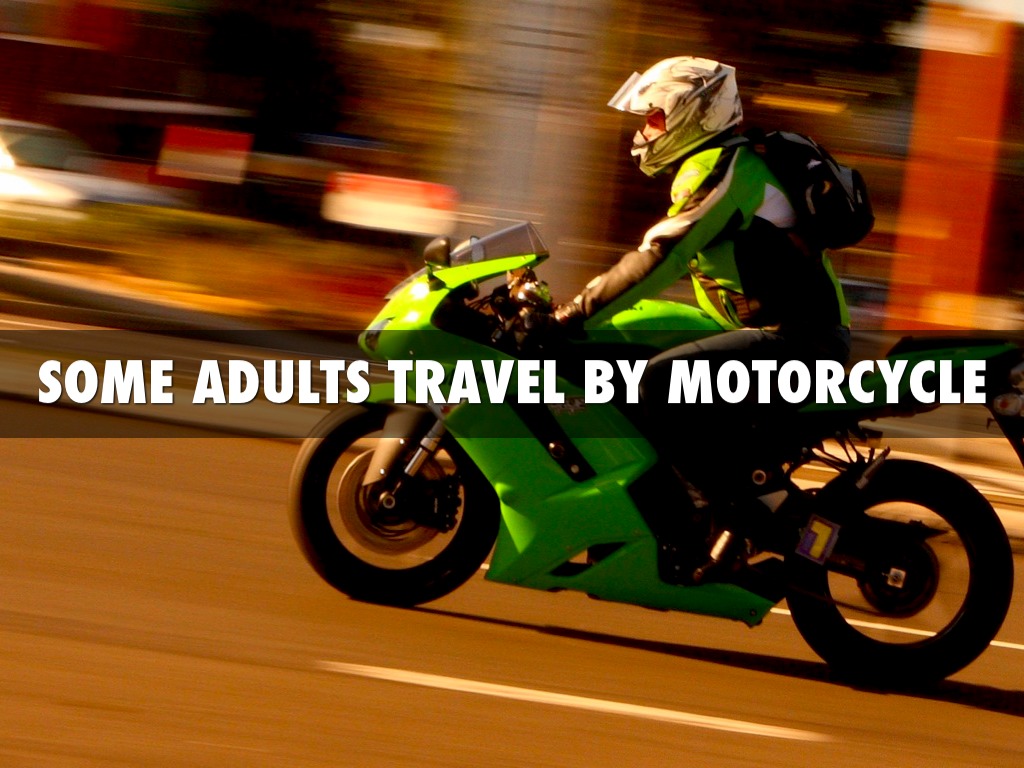 SOME ADULTS TRAVEL BY MOTORCYCLE