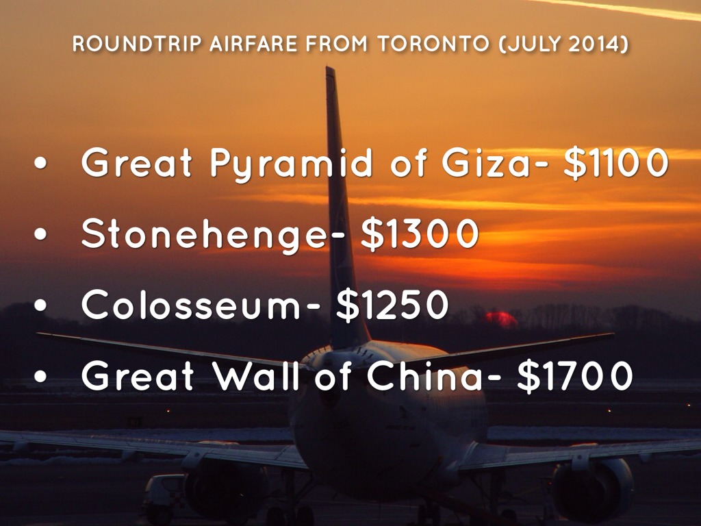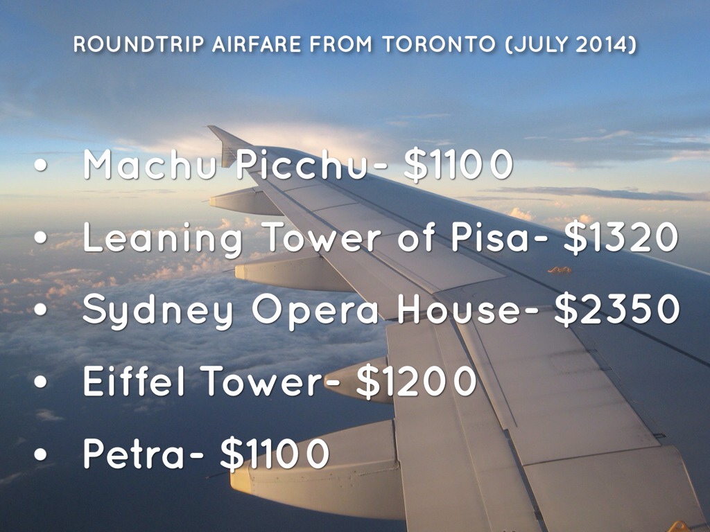 ROUNDTRIP AIRFARE FROM TORONTO (JULY 2014)