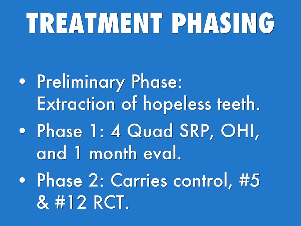Phase 1: 4 Quad SRP, OHI, and 1 month eval.