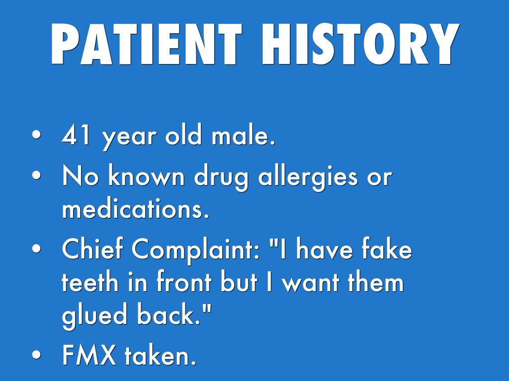 Chief Complaint: "I have fake teeth in front but I want them glued back."