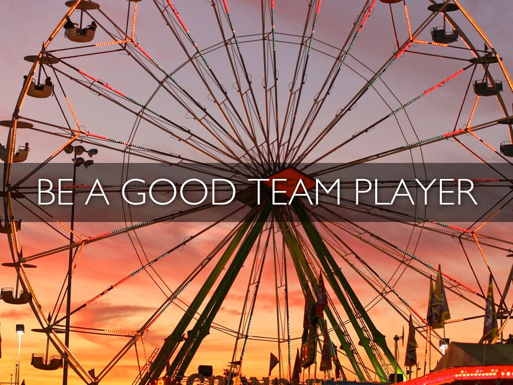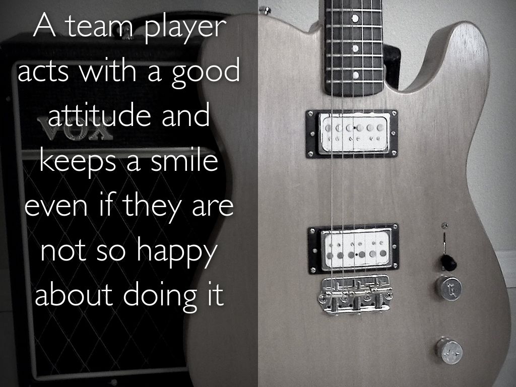 A team player acts with a good attitude and keeps a smile even if they are not so happy about doing it
