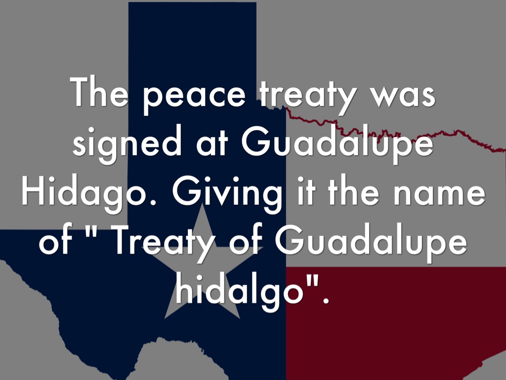 The peace treaty was signed at Guadalupe Hidago. Giving it the name of " Treaty of Guadalupe hidalgo".