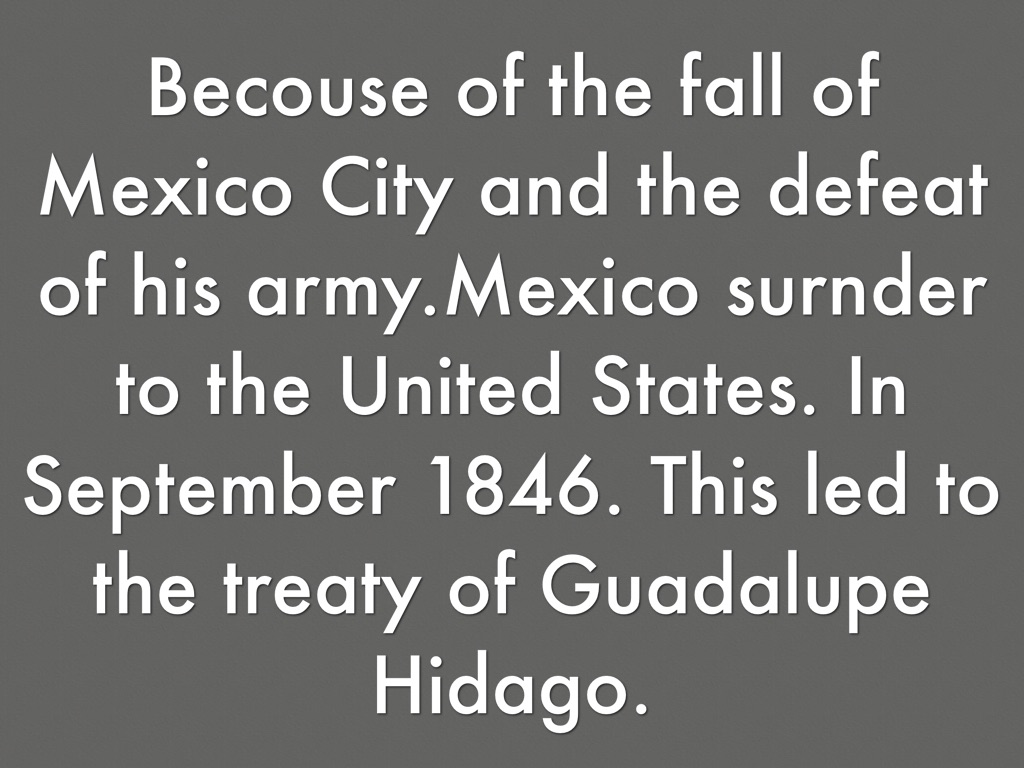 Becouse of the fall of Mexico City and the defeat of his army.Mexico surnder to the United States. In September 1846. This led to the treaty of Guadalupe Hidago.