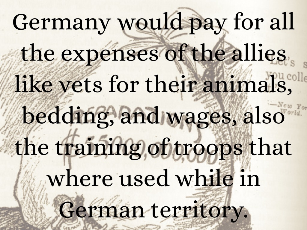 Germany would pay for all the expenses of the allies like vets for their animals, bedding, and wages, also the training of troops that where used while in German territory.