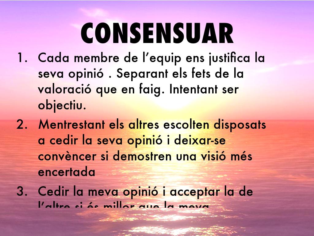 DEFENSAR EL CONSENS ENCARA QUE NO SIGUI EL QUE TU CREUS