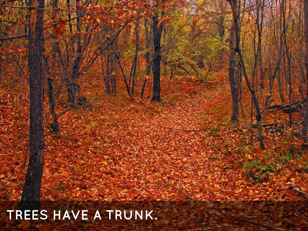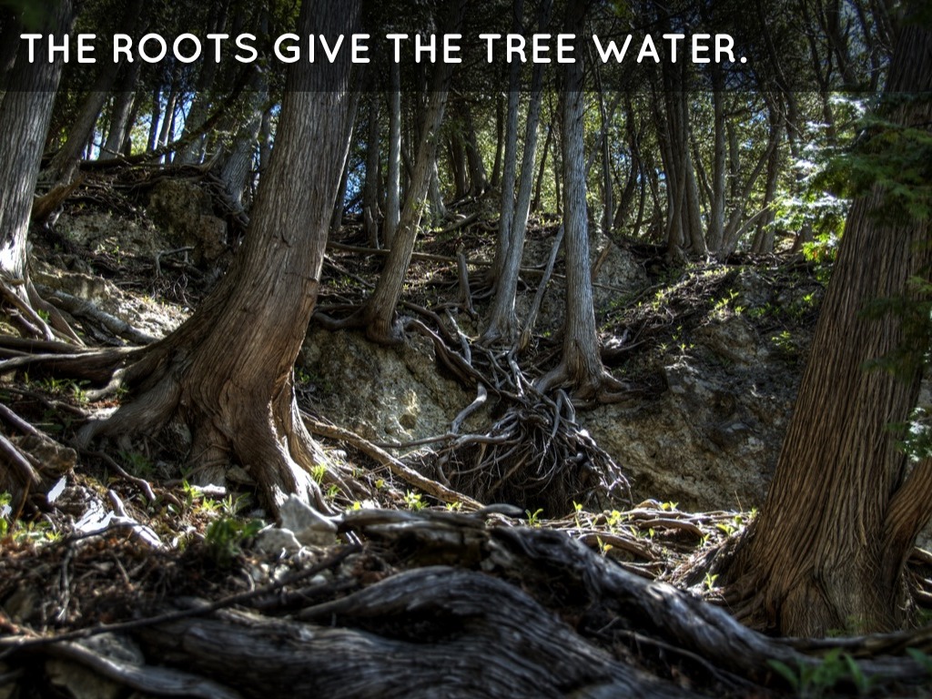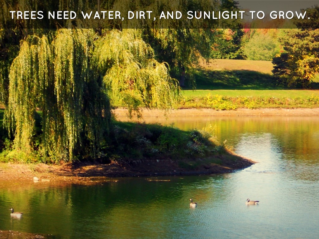 TREES NEED WATER, DIRT, AND SUNLIGHT TO GROW.
