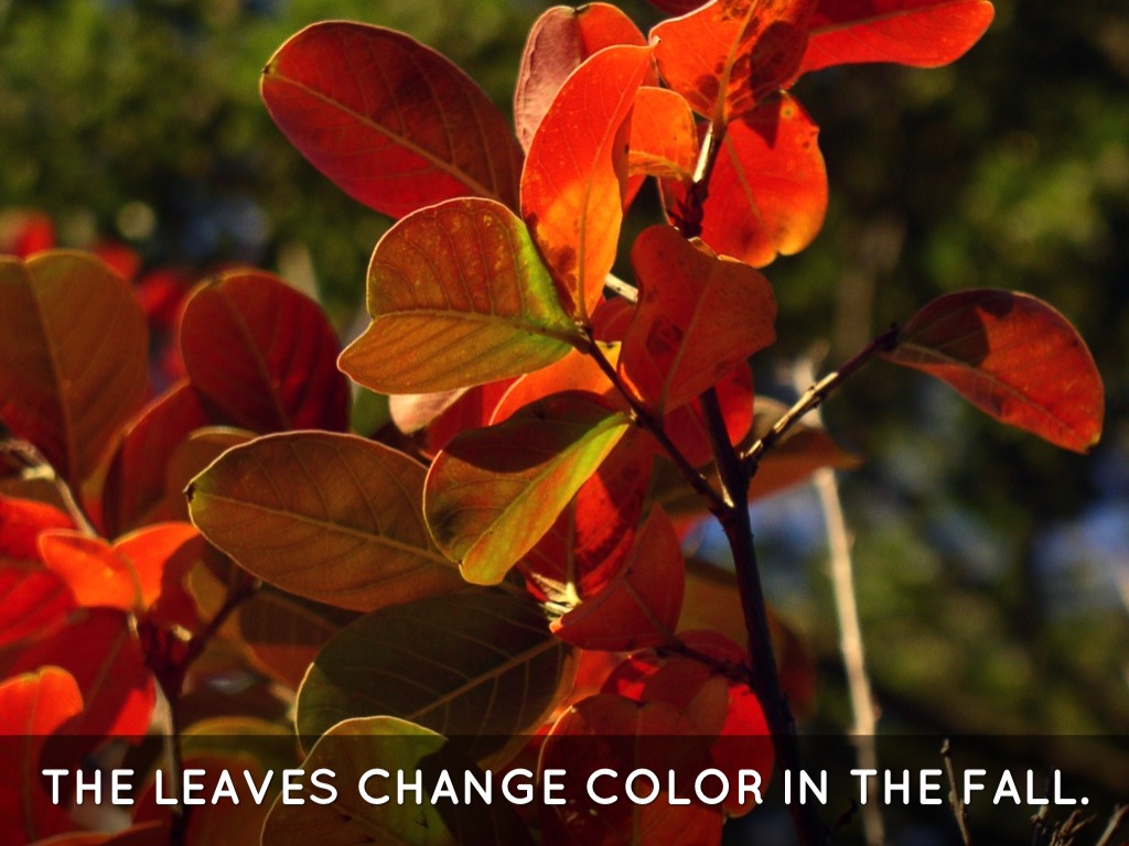 THE LEAVES CHANGE COLOR IN THE FALL.