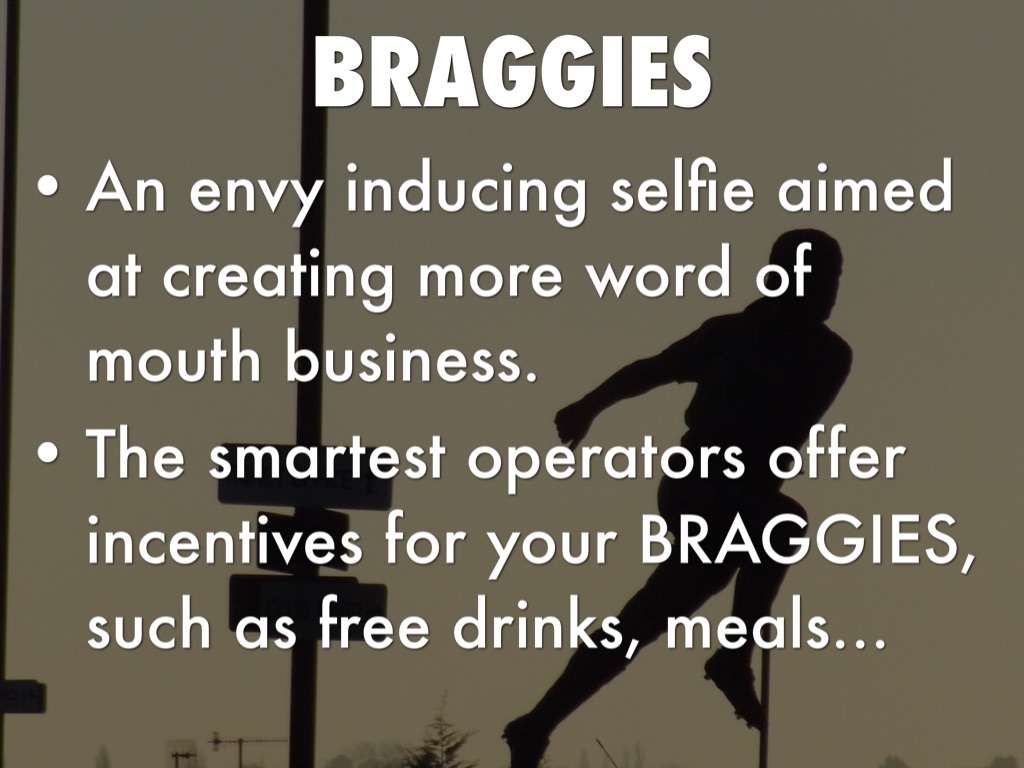 The smartest operators offer incentives for your BRAGGIES, such as free drinks, meals...