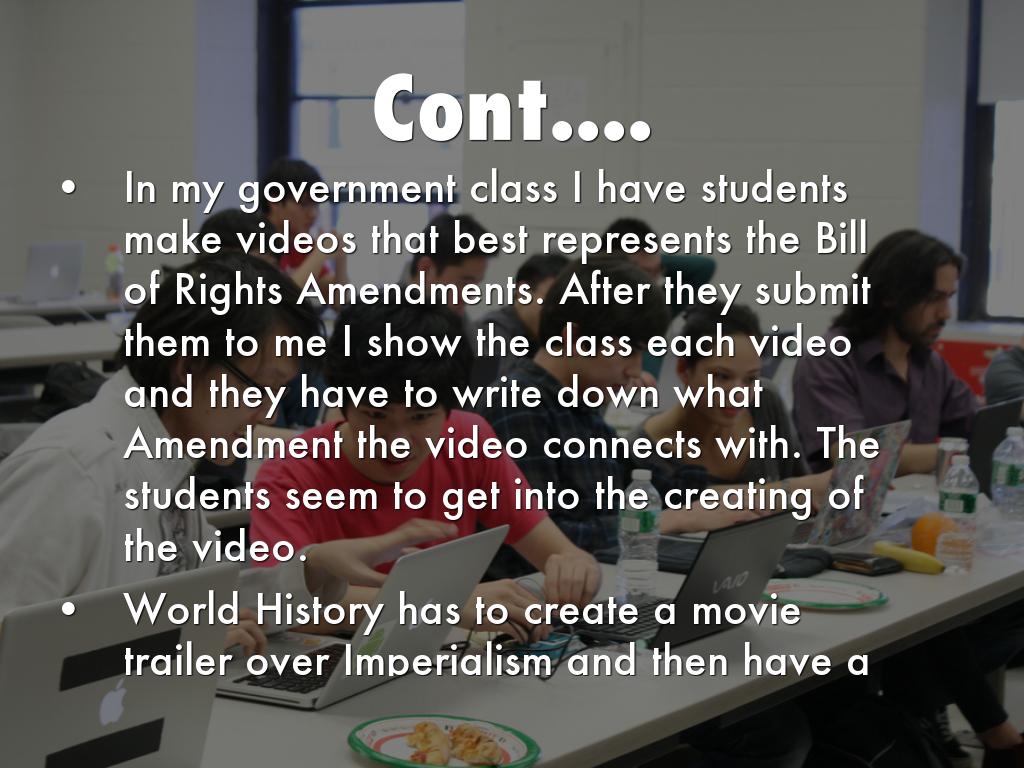 World History has to create a movie trailer over Imperialism and then have a storyboard of their explorer. Assigning them a video and story board allows them to manage with in a group and collaborating together in order for the storyboard and video connect together.