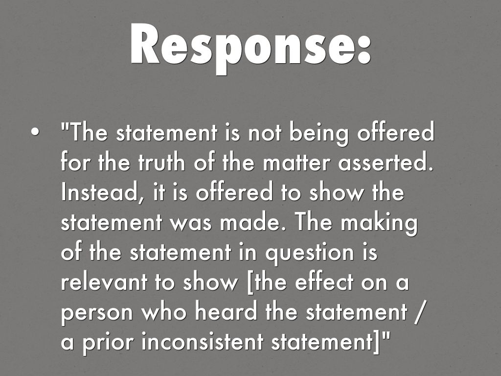 "The statement is not being offered for the truth of the matter asserted. Instead, it is offered to show the statement was made. The making of the statement in question is relevant to show [the effect on a person who heard the statement / a prior inconsistent statement]"