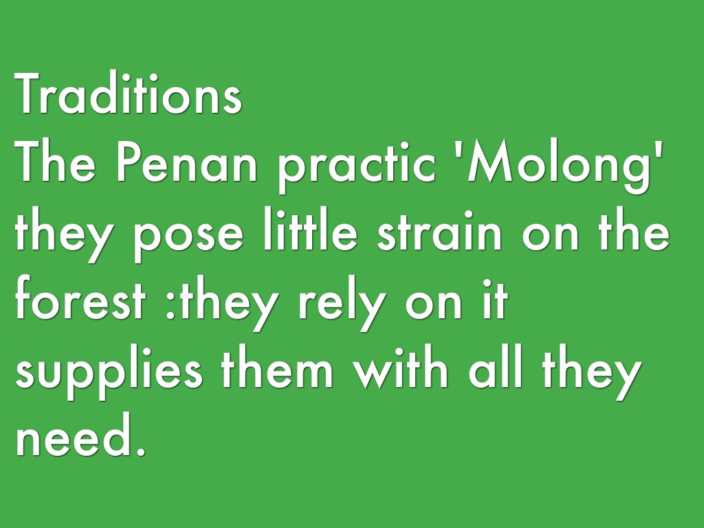 The Penan practic 'Molong' they pose little strain on the forest :they rely on it supplies them with all they need.