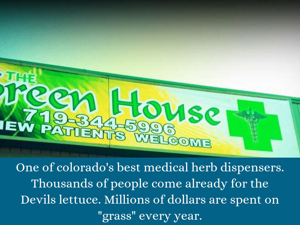 One of colorado's best medical herb dispensers. Thousands of people come already for the Devils lettuce. Millions of dollars are spent on "grass" every year.