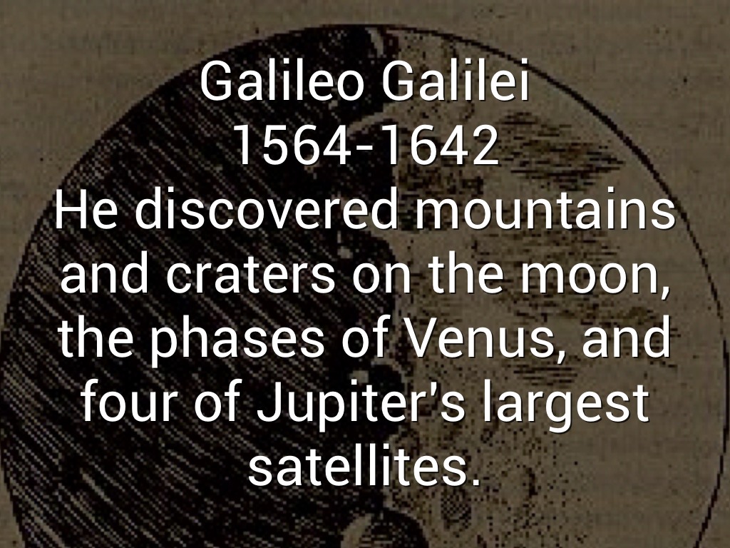 He discovered mountains and craters on the moon, the phases of Venus, and four of Jupiter's largest satellites.