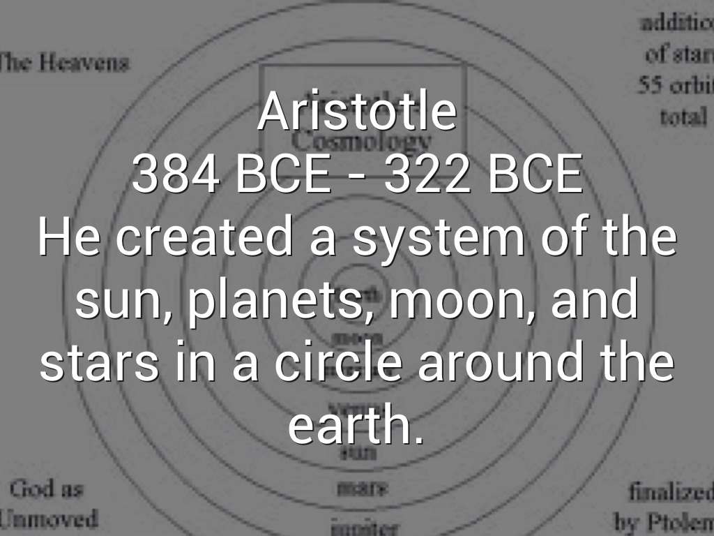 He created a system of the sun, planets, moon, and stars in a circle around the earth.
