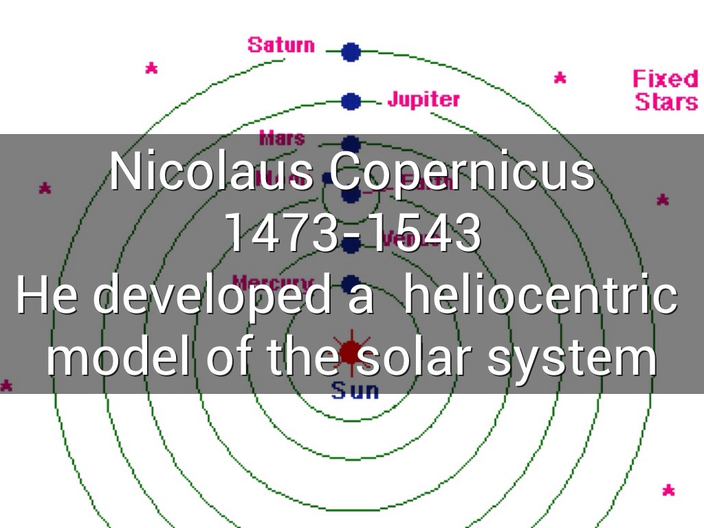HE PROPOSED A HELIOCENTRIC MODEL OF THE SOLAR SYSTEM.