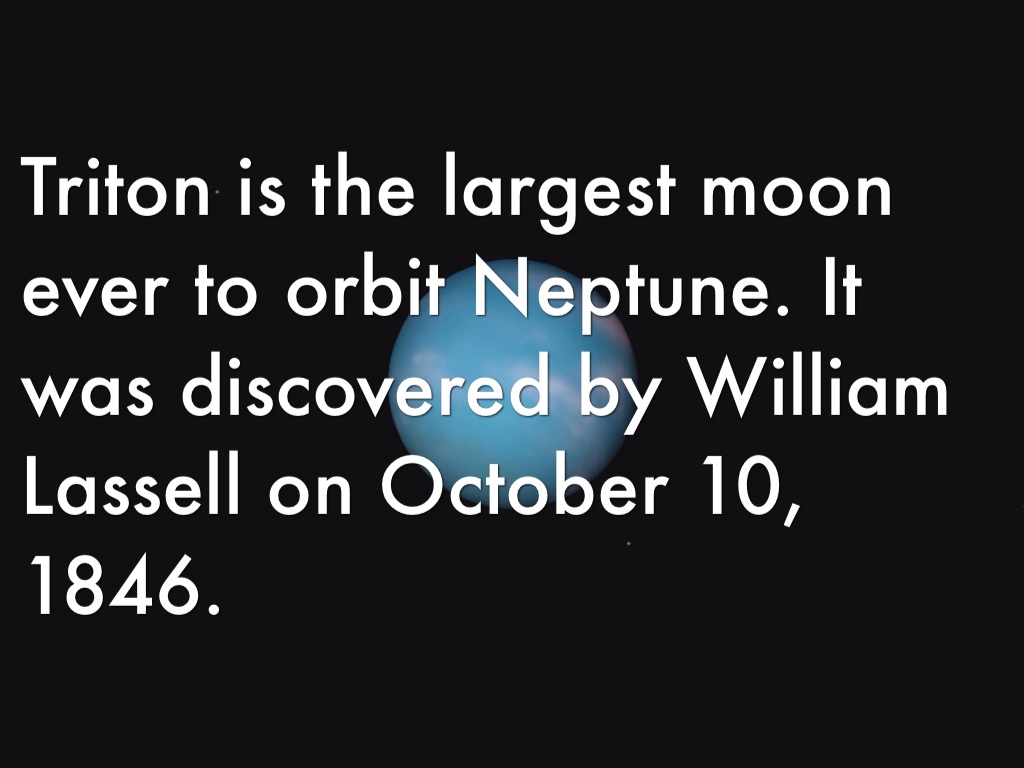 Triton is the largest moon ever to orbit Neptune. It was discovered by William Lassell on October 10, 1846.
