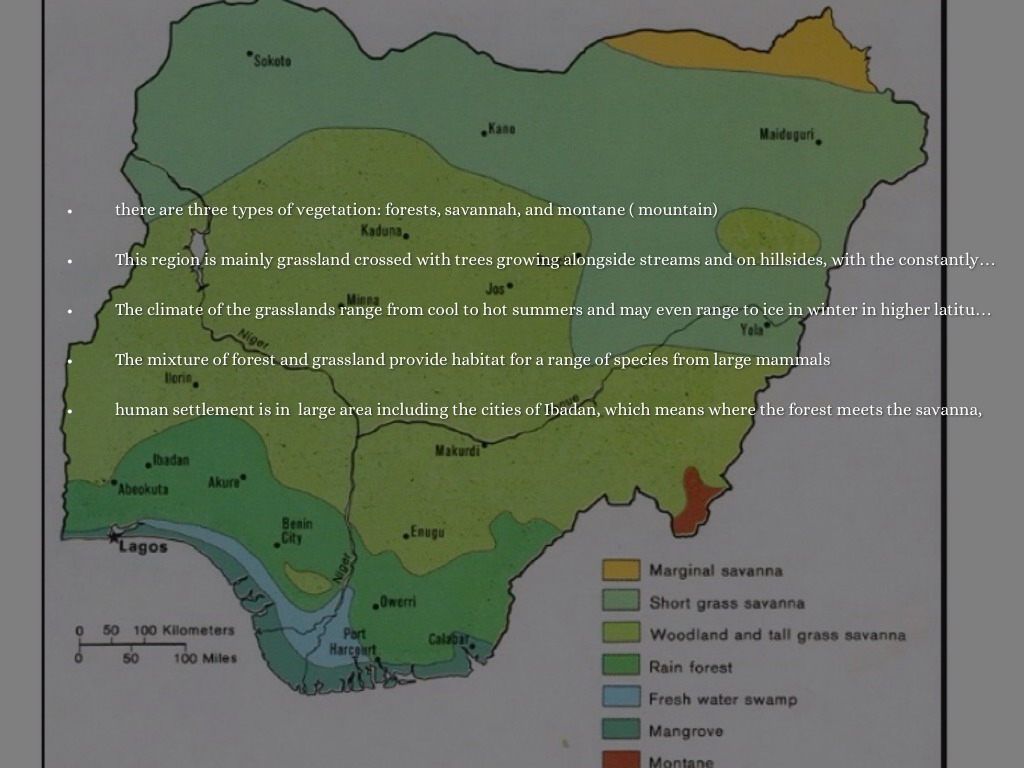 • human settlement is in large area including the cities of Ibadan, which means where the forest meets the savanna,