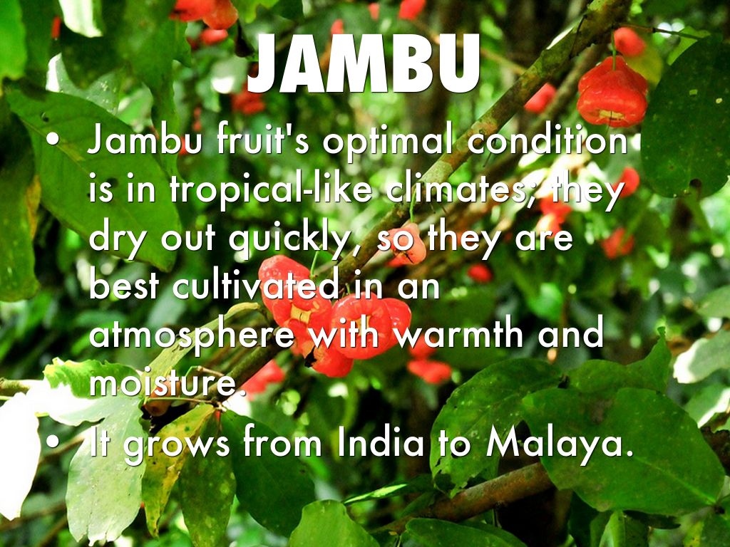 Jambu fruit's optimal condition is in tropical-like climates; they dry out quickly, so they are best cultivated in an atmosphere with warmth and moisture.