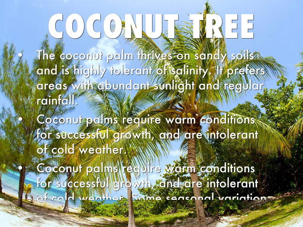 Coconut palms require warm conditions for successful growth, and are intolerant of cold weather.
