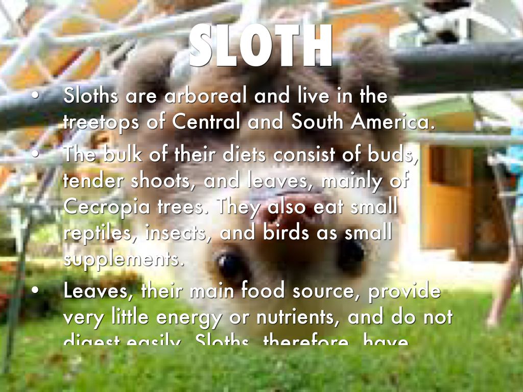 Sloths are arboreal and live in the treetops of Central and South America.