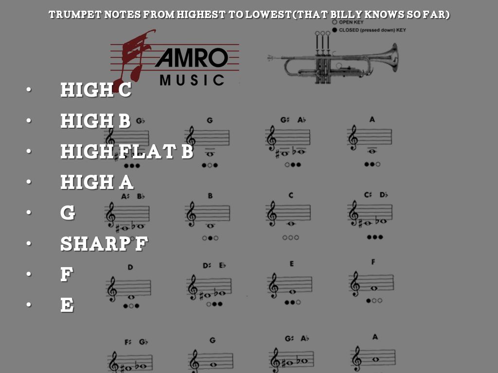 TRUMPET NOTES FROM HIGHEST TO LOWEST(THAT BILLY KNOWS SO FAR)