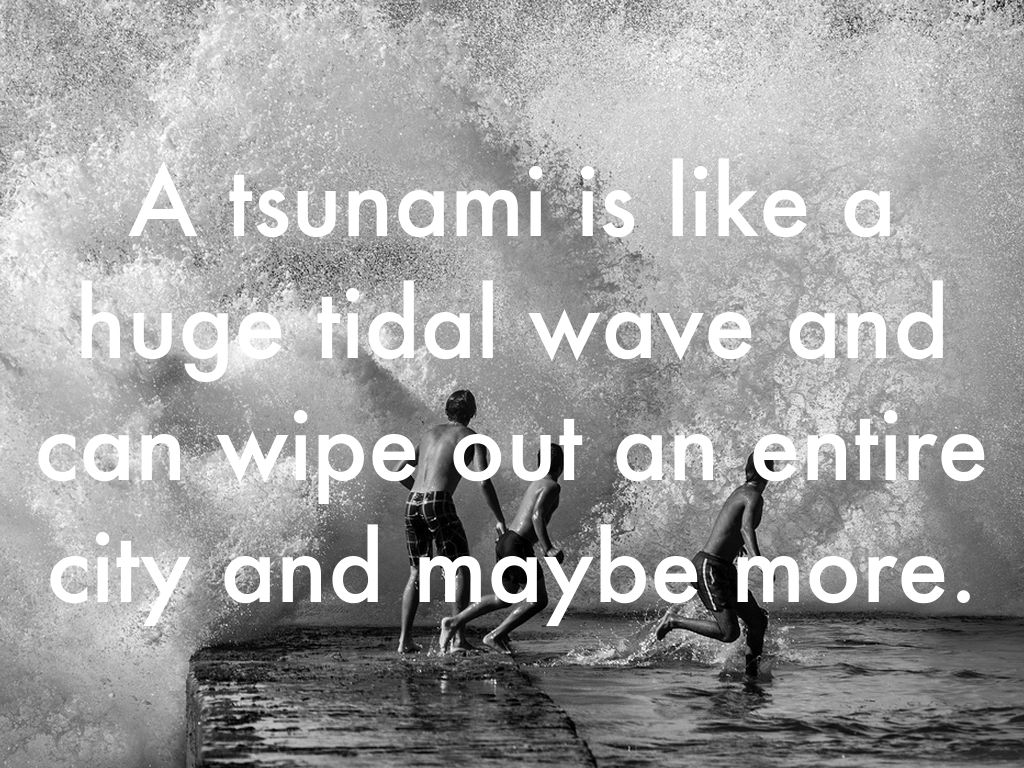 A tsunami is like a huge tidal wave and can wipe out an entire city and maybe more.