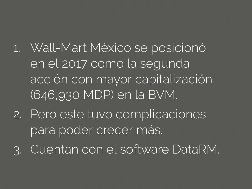 Wall-Mart México se posicionó en el 2017 como la segunda acción con mayor capitalización (646,930 MDP) en la BVM.