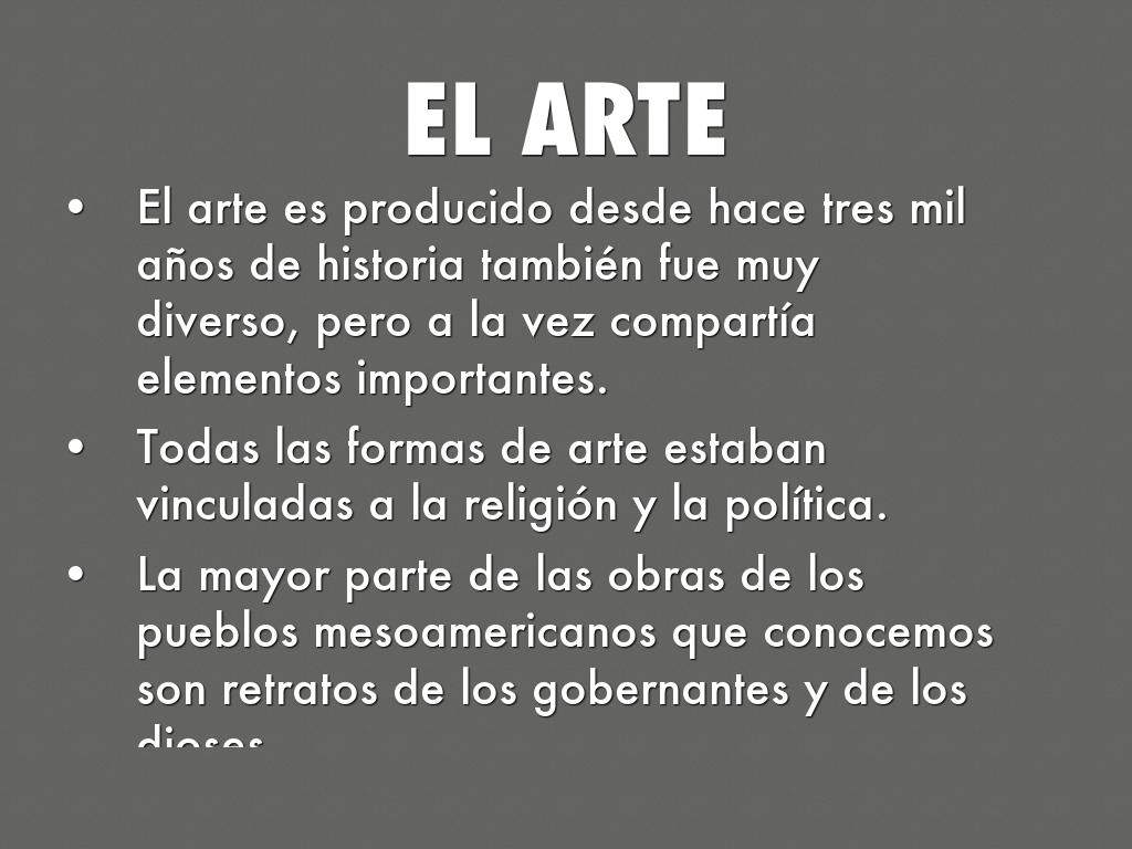 El arte es producido desde hace tres mil años de historia también fue muy diverso, pero a la vez compartía elementos importantes.