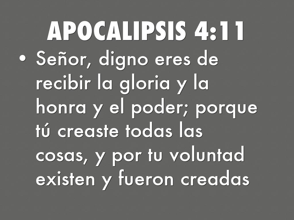 - Señor, digno eres de recibir la gloria y la honra y el poder; porque tú creaste todas las cosas, y por tu voluntad existen y fueron creadas