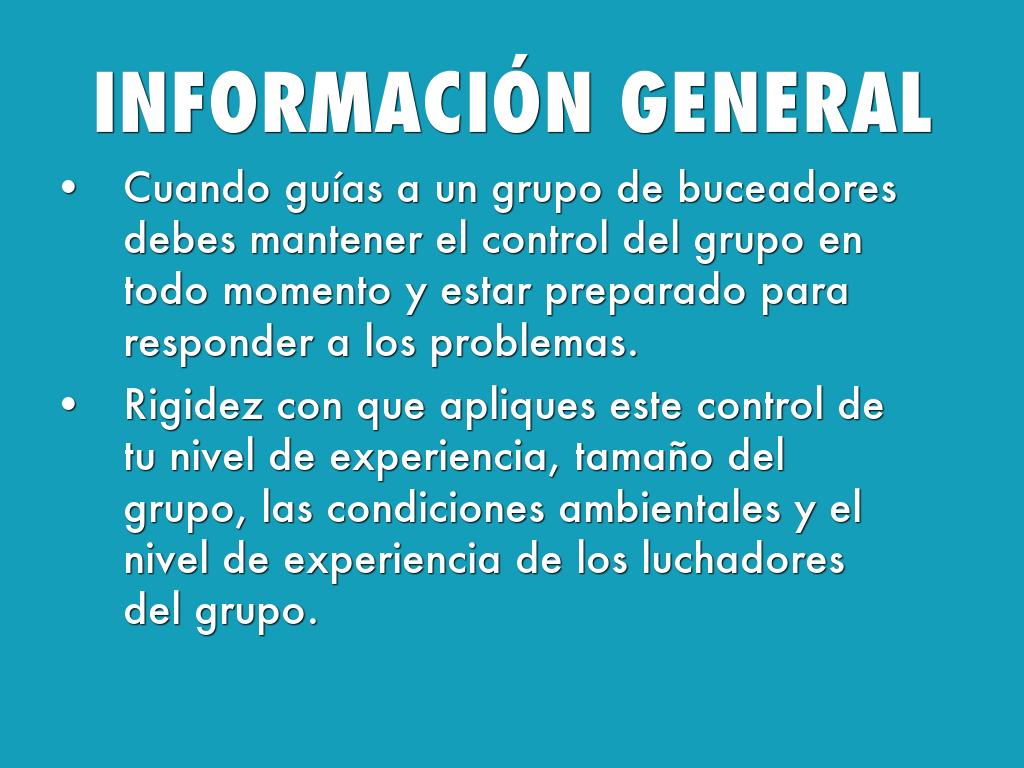Cuando guías a un grupo de buceadores debes mantener el control del grupo en todo momento y estar preparado para responder a los problemas.