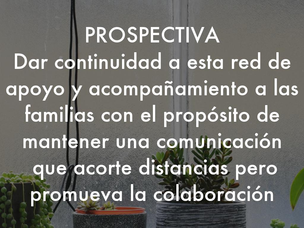 PROSPECTIVA Dar continuidad a esta red de apoyo y acompañamiento a las familias con el propósito de mantener una comunicación que acorte distancias pero promueva la colaboración