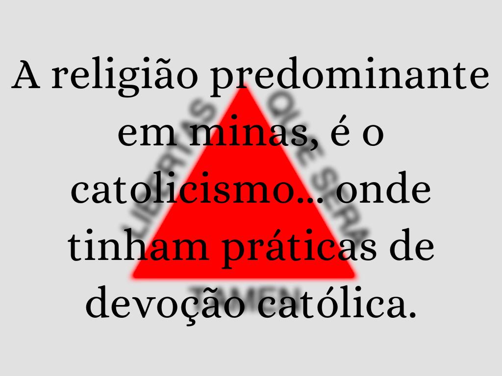 A religião predominante em minas, é o catolicismo... onde tinham práticas de devoção católica.