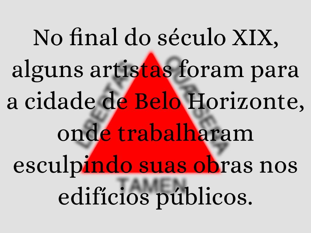 No final do século XIX, alguns artistas foram para a cidade de Belo Horizonte, onde trabalharam esculpindo suas obras nos edifícios públicos.