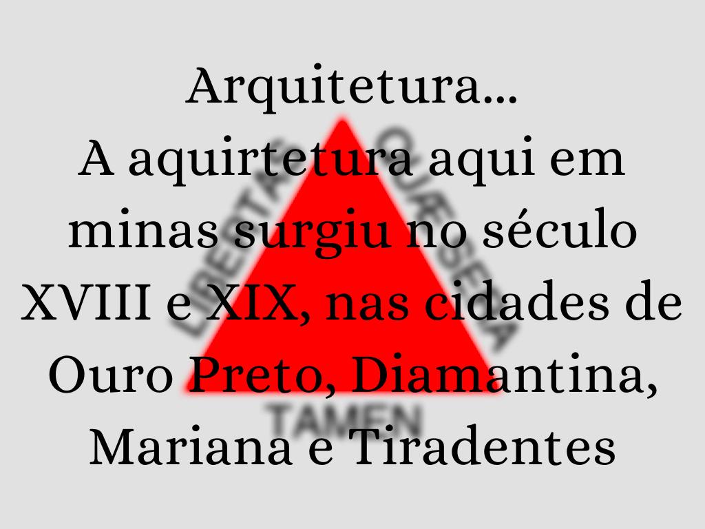 A aquirtetura aqui em minas surgiu no século XVIII e XIX, nas cidades de Ouro Preto, Diamantina, Mariana e Tiradentes