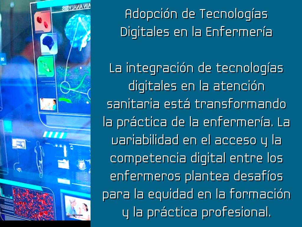 La integración de tecnologías digitales en la atención sanitaria está transformando la práctica de la enfermería. La variabilidad en el acceso y la competencia digital entre los enfermeros plantea desafíos para la equidad en la formación y la práctica profesional.