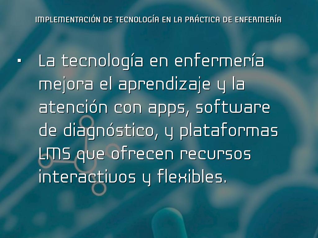 • La tecnología en enfermería mejora el aprendizaje y la atención con apps, software de diagnóstico, y plataformas LMS que ofrecen recursos interactivos y flexibles.
