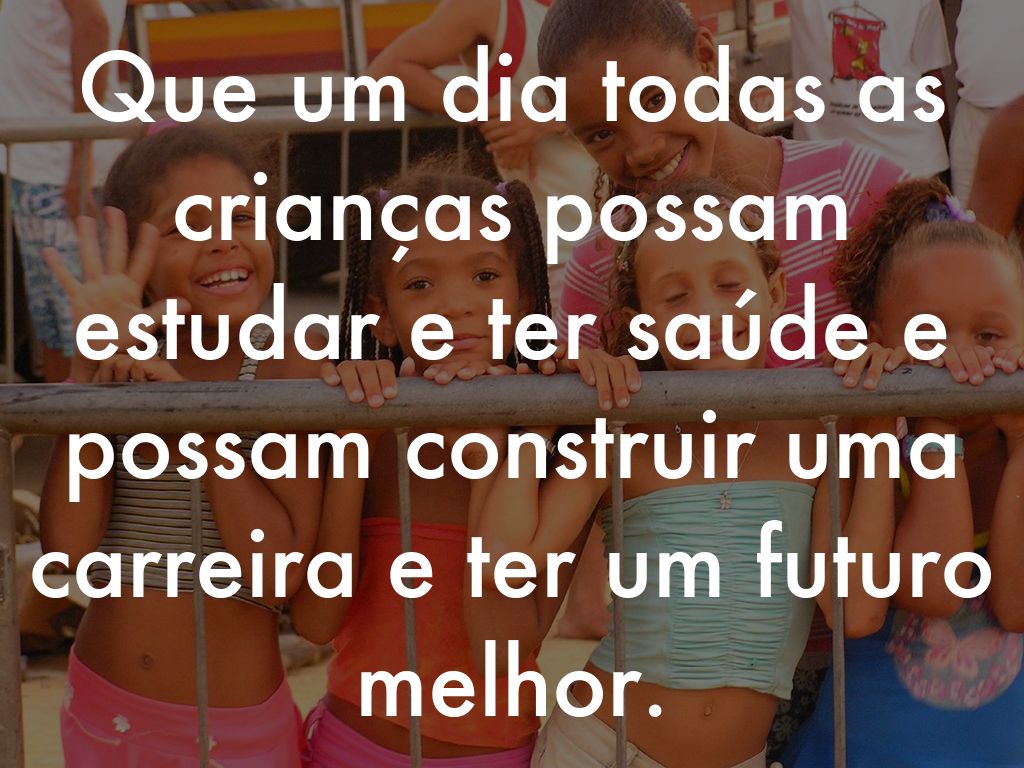 Que um dia todas as crianças possam estudar e ter saúde e possam construir uma carreira e ter um futuro melhor.