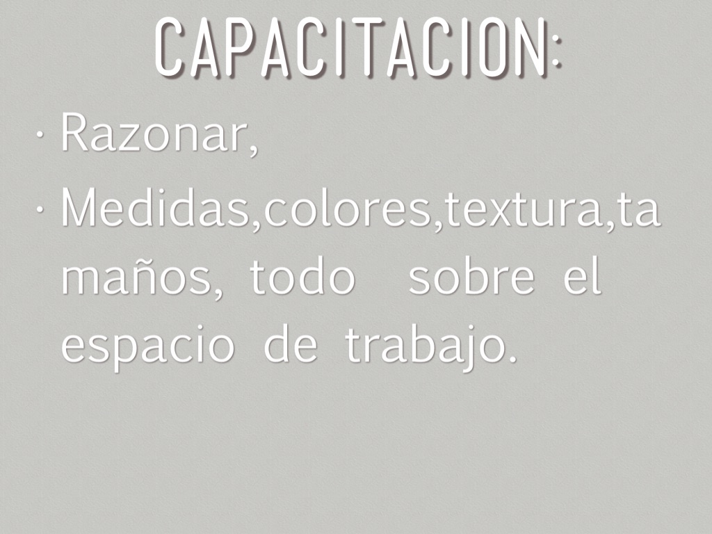 Medidas,colores,textura,tamaños, todo sobre el espacio de trabajo.