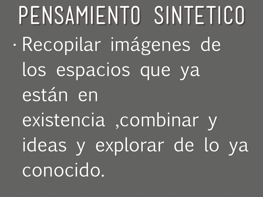 Recopilar imágenes de los espacios que ya están en existencia ,combinar y ideas y explorar de lo ya conocido.