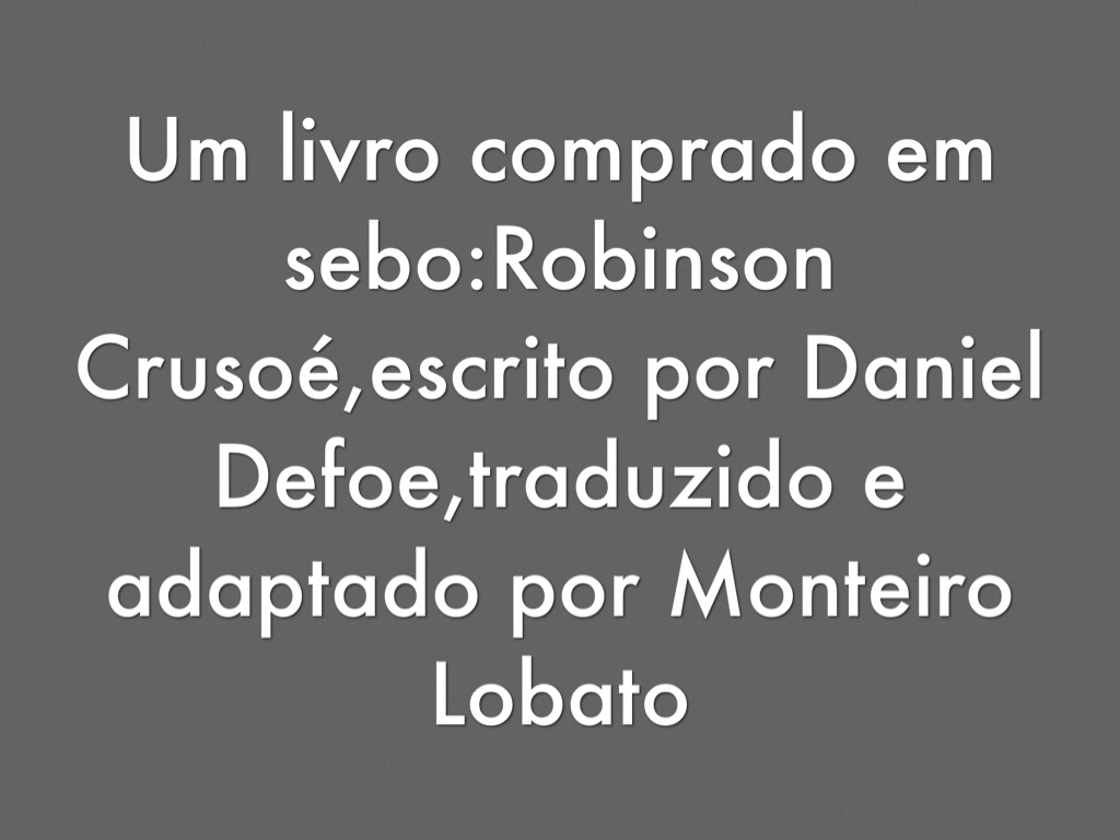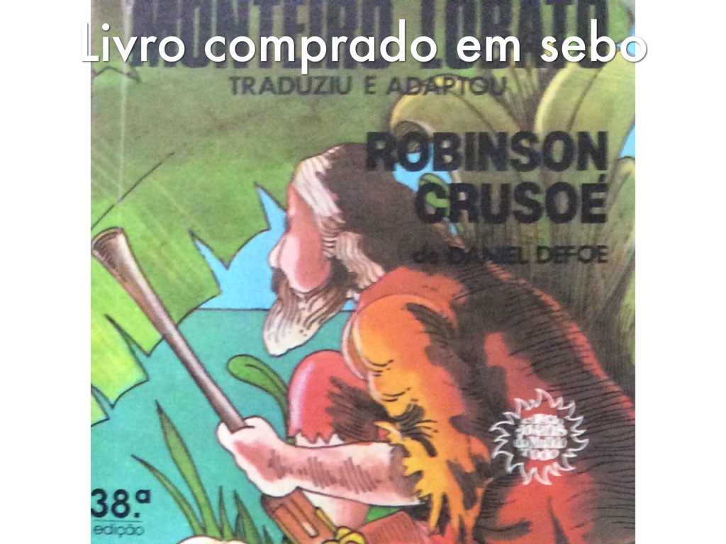 Um livro comprado em sebo:Robinson Crusoé,escrito por Daniel Defoe,traduzido e adaptado por Monteiro Lobato