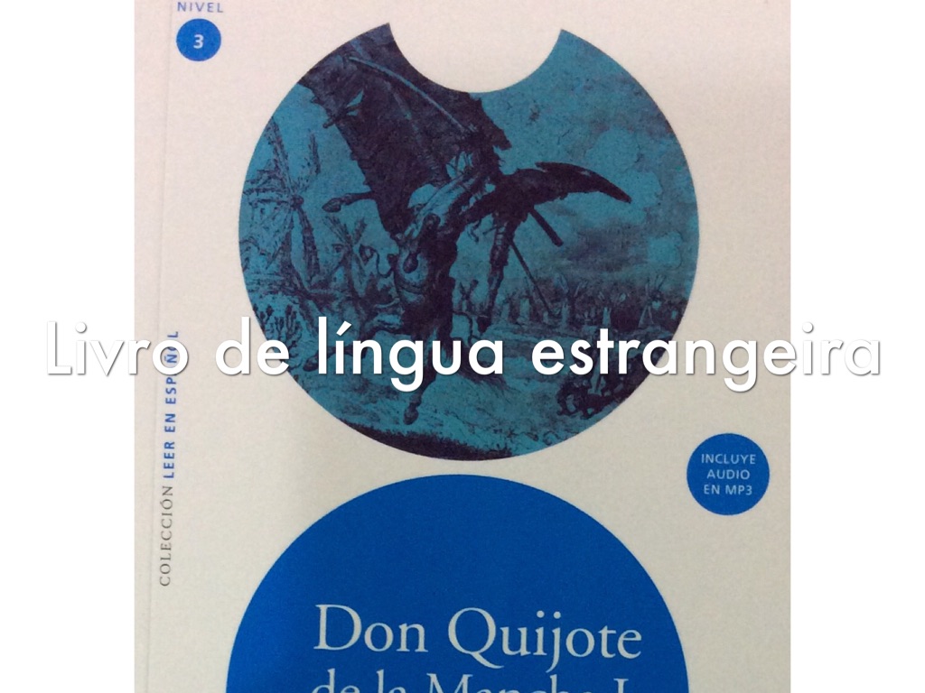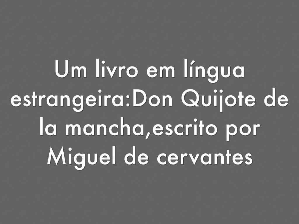 Um livro em língua estrangeira:Don Quijote de la mancha,escrito por Miguel de cervantes