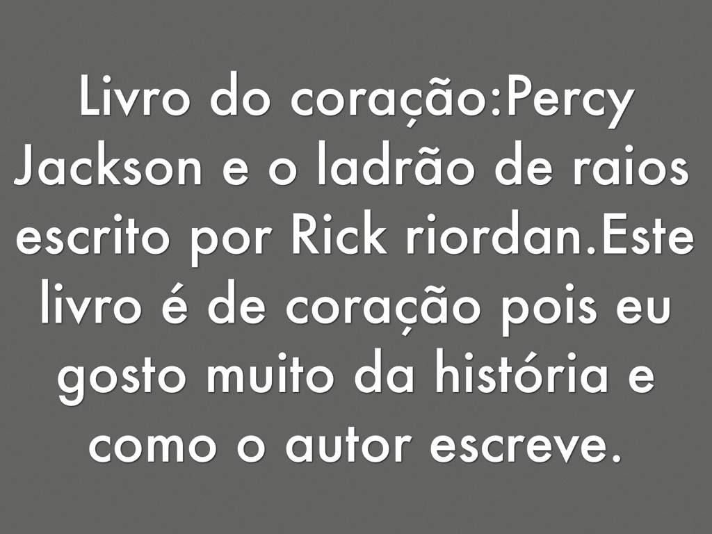 Livro do coração:Percy Jackson e o ladrão de raios escrito por Rick riordan.Este livro é de coração pois eu gosto muito da história e como o autor escreve.