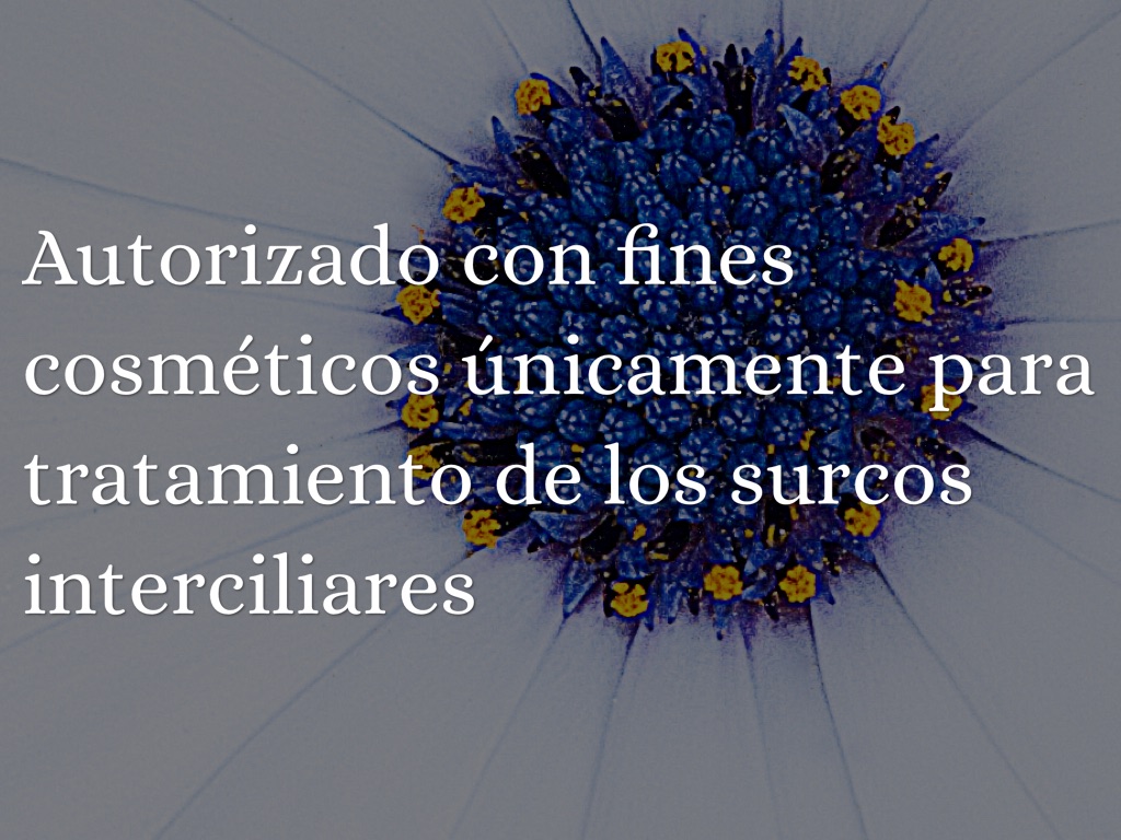 Autorizado con fines cosméticos únicamente para tratamiento de los surcos interciliares